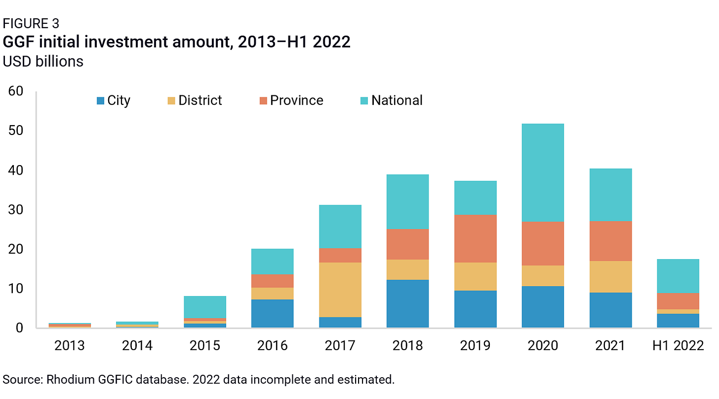 通过国家指导的投资基金撬动国家投资:截至 2017 年,设立了近 800 支国家引导基金,总规模达 2.2 万亿元人民币,以支持研发和产业创新,重点是 MIC25 相关行业。11 这些资金用于将国家指导的资本引导到关键部门,以刺激技术进步并减少对外国技术的依赖。