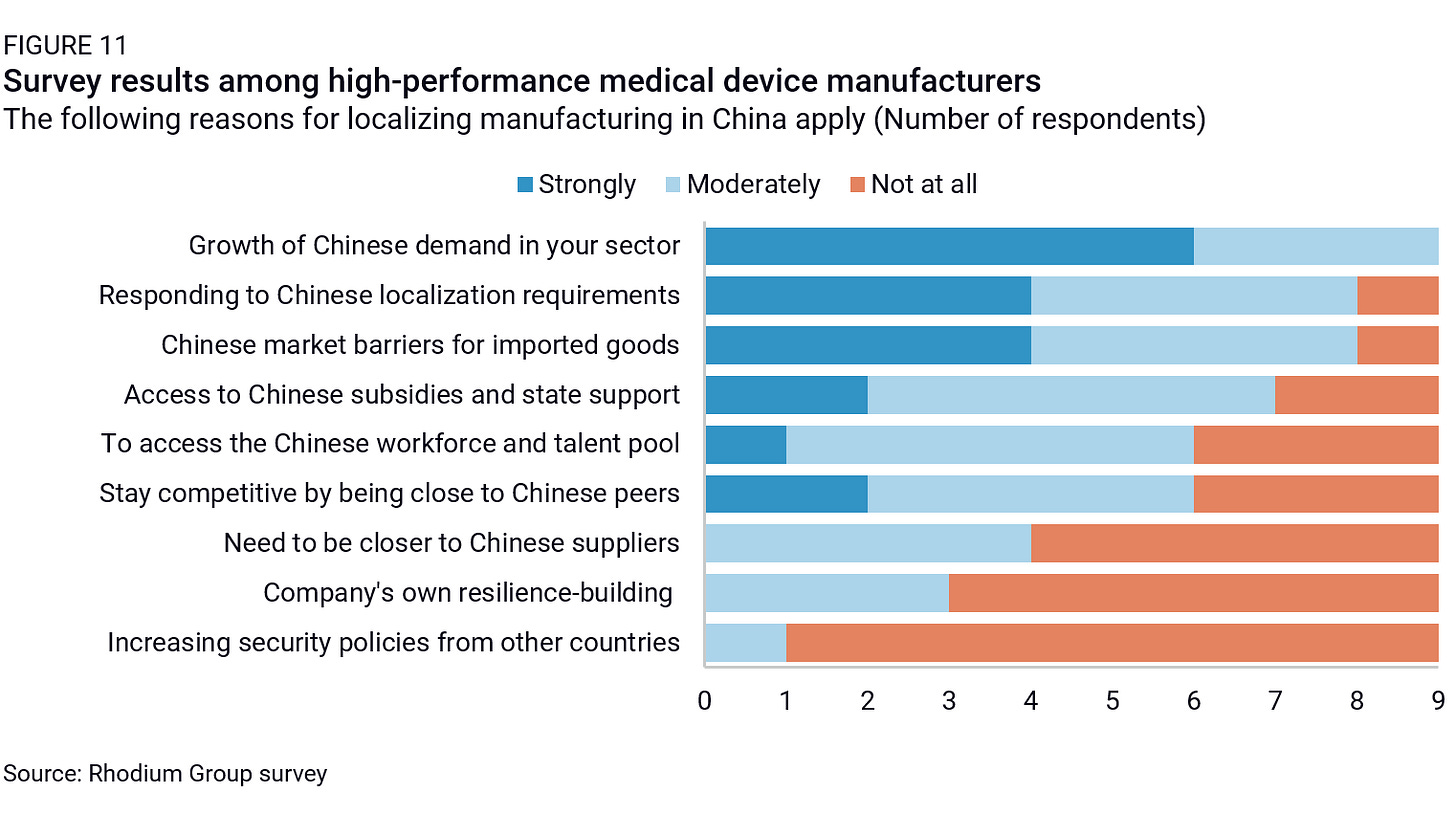 在医疗技术方面,中国公司在生产一些受知识产权保护的核心医疗器械组件方面落后,需要 5-10 年的时间才能赶上。