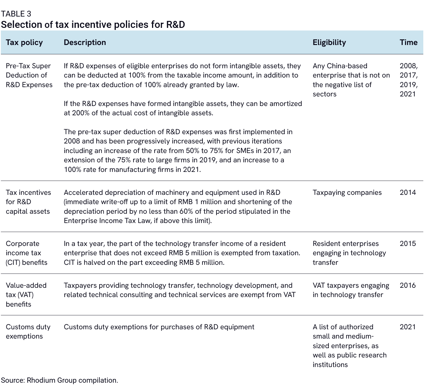 相比之下,政府通过税收优惠提供的支持增长要剧烈得多,而且更紧密地适应 MIC25。2018 年至 2022 年期间,旨在促进创新的税收优惠规模平均每年飙升 28.8%。2015 年至 2023 年期间,享受额外扣除和减税的公司比例翻了两番多。这些减税措施,包括作为“研发费用额外扣除”的一部分大幅增加的税款,大部分是在过去十年中引入的(表3)。